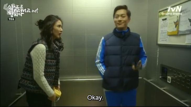 After cleaning up the mess made in the elevator, she notices the liquid that was leaking from Goo Dae-young’s garbage bag earlier and notifies him about it. But all he does is just smile and says that he’ll clean it up. LOL, I love Goo Dae-young already :3 (yes I’m being a bit biased here).