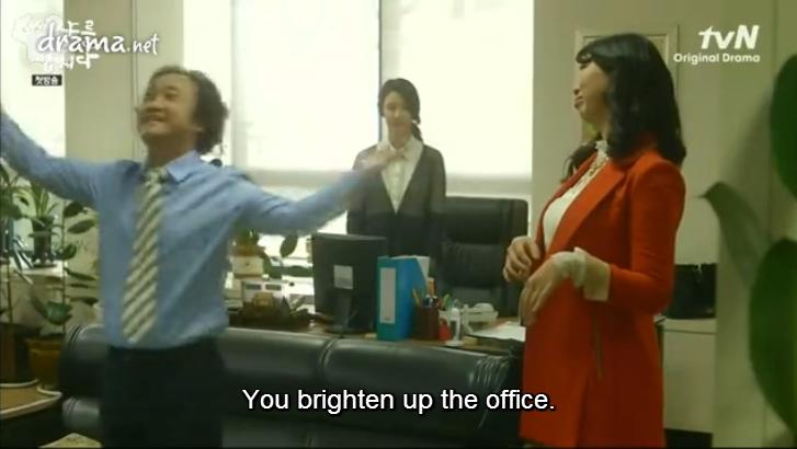 The next scene takes place at Soo-kyung’s work place which is a lawyer’s office. There are four people that work at this office, including Soo-kyung herself, Kyu-shik who is also Kyung Mi’s husband, Do-yeon a lawyer, and our second lead male Hak-moon who is also another lawyer.