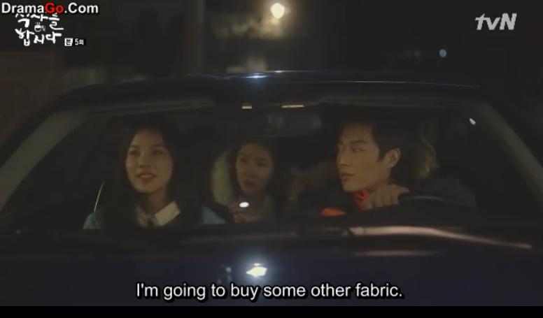 When they arrive outside of Jin Yi’s previous house, she suddenly changes her mind and says that she doesn’t want that fabric that she bought for her apartment anymore and wishes to go back to the apartment. Soo Kyung misunderstands and tells her to just keep the fabric since she bought it but Jin Yi refuses to and plans to buy another one. Dae Young, being the awesome and understanding person that he is, takes them back home without any complaining.