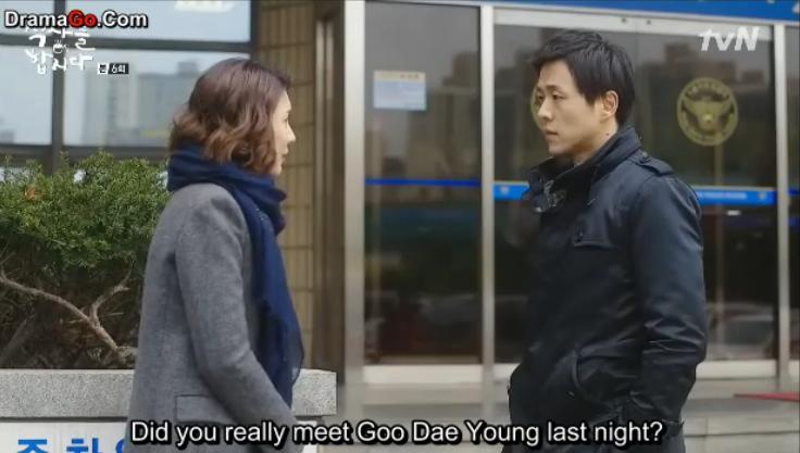 Dae Young explains that there weren’t any CCTV’s nor witnesses passing by around the time they met as well so it’ll be hard for Dae Young to prove himself innocent. But Lawyer Kim reassures him that since the police doesn’t have enough evidence either, they can’t issue an arrest warrant or detain him for more than 48 hours.