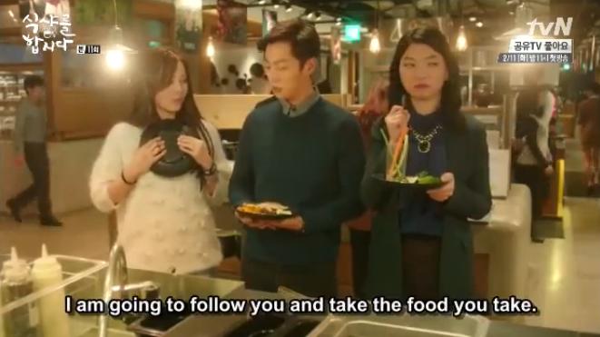 Lawyer Kim scolds Gyu-sik who has gone back to get some more food to not get too much for there are others are the buffet who also needs to eat. That’s when he tries to get Soo Kyung’s attention so that she can get some of the food that she had wanted but couldn’t get earlier because it had run out (aw, so kind). Soo Kyung mistakens Lawyer Kim’s signal as him wanting her to do something for him so she avoids him. He’s just trying to save you some meat Soo Kyung Unnie. Haha.