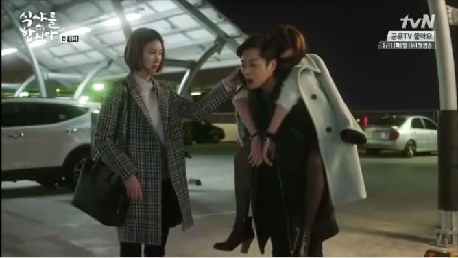 Jin Yi passes out from all the drinking (she’s always the one to get drunk, lol) so Soo Kyung and Dae Young decide that it’s best to go home. Dae Young carries Jin Yi on his back which causes Lawyer Oh to grow jealous so it’s not long until he receives a phone call from Lawyer Oh who wants to have another drink with Dae Young (what’s wrong with this girl? Calm dowwwwnnn). But he rejects her request and ends the phone call. Soo Kyung, who has been holding the cell phone the whole time for Dae Young while he was speaking to Lawyer Oh, scolds him for being such an easy guy, always flirting and interacting with Jin Yi and Lawyer Oh even though he has no intentions of dating them (you tell him gurl!). He states that Lawyer Oh is like a friend to him and he only sees Jin Yi as a younger sister. Soo Kyung doesn’t understand Dae Young and leaves him hanging after planning to get home by taxi.