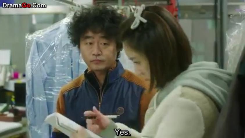 Soo Kyung goes to the dry cleaning shop to get a stain on her jacket removed. While handing Soo Kyung the sheet for her to fill out, the owner gives her a suspicious look before the camera focuses in on Soo Kyung again.