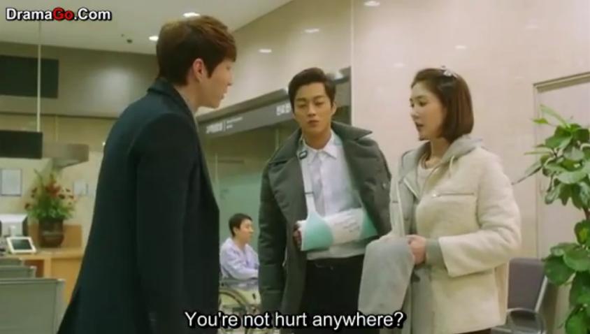 They are both walking out together when Lawyer Kim comes storming into the hospital. Dae Young walks away after a few seconds of standing with the two leaving Lawyer Kim and Soo Kyung behind to talk to each other. Just then, Jin Yi comes entering the hospital to find Dae Young in a cast. They talk for a few minutes before deciding to go eat so Soo Kyung leaves Lawyer Kim to join her two neighbors as well.