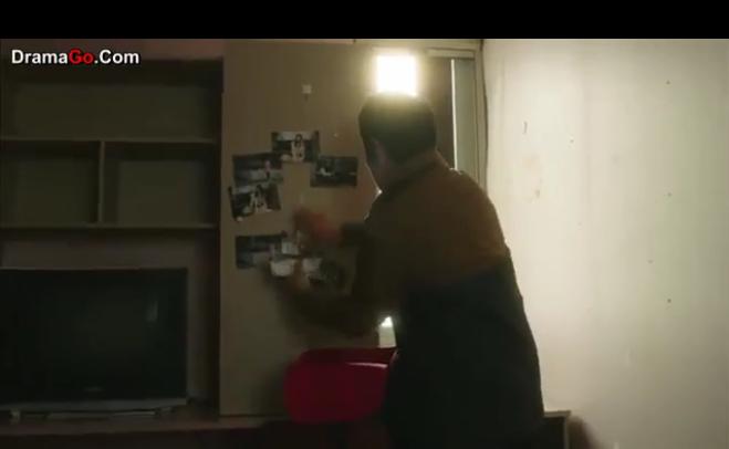That’s when we go to Gwang Suk’s apartment where he’s seen packing and stuffing his bag with his belongings in a hurry. He takes down all the pictures he took of Jin Yi secretly on his wall and throws them into the trashcan. Gwang Suk is one step too late as before he can get out of the building, Dae Young has already entered and there they meet. Gwang Suk runs away from Dae Young so Dae Young chases him all the way to the top of the building. Dae Young throws a few punches at Gwang Suk then interrogates him to find out where Jin Yi is. Gwang Suk just replies, “Jin Yi…Jin Yi isn’t at home?” What. Are you serious?