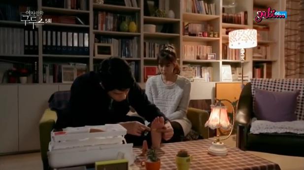 Hee Eun tries to blame Ji-hoo for getting herself attached to her Yunho, but Tae-soo doesn’t blame Ji-hoo because he’s not interested in Ji-hoo’s past. He is fully aware of how much Ji-hoo likes him and that’s all that matters to him. When Hee Eun and Yunho leave, Tae-soo notices Ji-hoo’s injured hurt and scolds her for running barefoot on glass.
