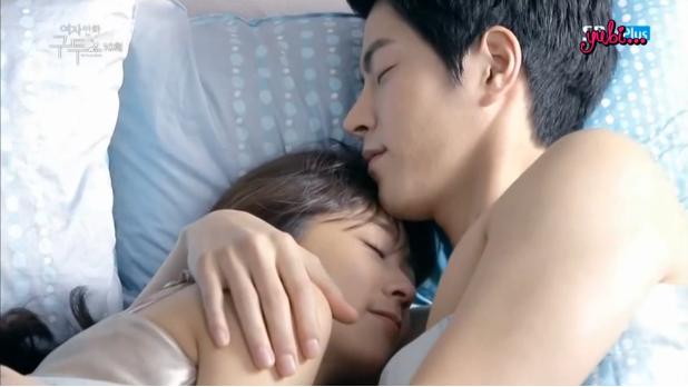 In the next scene, we see Ji-hoo and Tae-soo on the same bed (WOAH WOAH WOAH WOAH THERE. MY EYES. WOAH WUT IS THIS. WASN’T THIS DRAMA SUPPOSED TO BE FULL OF INNOCENCE AND CUTENESS AND WUT. I JUST CAN’T PROCESS ALL OF THIS IN MY HEAD RIGHT NOW) where Tae-soo is creeping at Ji-hoo while she sleeps. Tae-soo is shirtless while Ji-hoo only has a thin tank top on (idk why i added this detail lolol). She wakes up to find him staring at her and instead of being creeped out, she scoots closer to him and they embrace one another in bed. (Can i get an awwwww?)