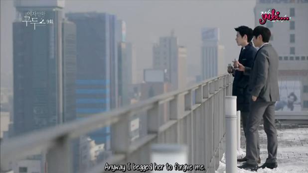 Tae-soo is taking a break with his friend on top of the building’s roof. His friend starts the conversation off with a great question, “Why are women so complicated?” LOL. Tae-soo should exactly understand this question. But as his friend goes off on his own story, Tae-soo can only think about his kiss with Ji-hoo and the incident that occurred the night before.