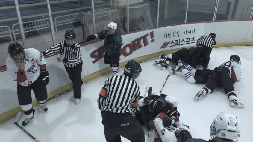 The next day at school, the hockey team is outside exercising and practicing, but their practice is interrupted by the constant screams and shouts from Yoo-Ah and her two friends who keep themselves busy by watching the hockey team exercise. They of course are careless about what others think and continue to show their support by continually yelling and exclaiming.
