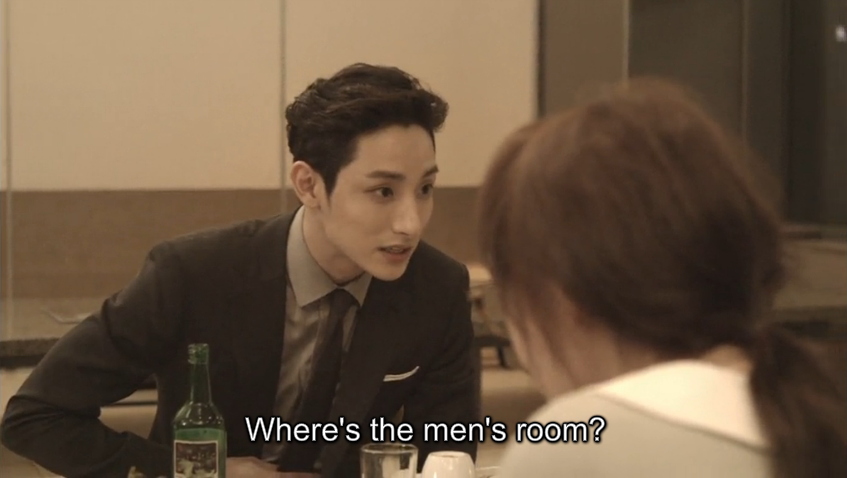 She follows him to the men’s restroom and courageously and shamelessly enters it to talk to Director Yoo, totally ignoring the fact that it’s the men’s restroom. She confesses that she likes him, but his response to her confession is the opposite of what she had expected. Director Yoo doesn’t feel the same way towards Soo Young and in the nicest way possible rejects her feelings. Ugh. Talk about one-sided love and rejection. Oof, that gotta hurt.