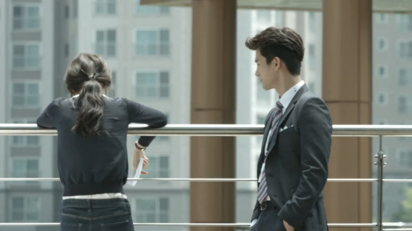 Even his own team members start to suspicion him. Everyone except for his ally and friend, Jung Soo Young. She tries to defend him, but Assistant Manager Yoon interrupts everyone (like how he always does) and reminds them to get back to work. When they go back to minding their own business, Min Suk enters the office and finds it odd how none of the employees are giving him any of their attention like how they used to in the past. He meets up with Soo Young on the balcony to discuss with her what’s with everyone’s strange behavior. Soo Young breaks it to him that everyone’s accusing him of being a spy which Min Suk just doesn’t seem to understand. He grows angry and mad over this.
