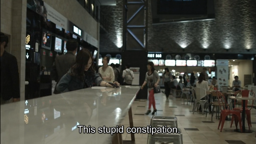 Min Suk checks his cell phone to find a message sent by his stalker (AKA Yoo-Ah) so he heads straight to the movie theaters after barely remembering that he promised to go watch a movie with her. Of course Soo Young becomes a bit sad when Min Suk leaves the table and checks behind her to see if Min Suk is still visible or not. Awww.