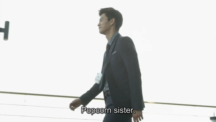 Min Suk follows Soo Young to the balcony to comfort her. He acknowledges her hot-tempered attitude and even comfortably calls her “popcorn sister” as if he’s been saying it for a long time now. She is reminded of how he needs to go to the airport to wish his daughter good-bye before she leaves to study abroad, but because of what happened, it doesn’t seem possible. Min Suk notices the bag of medication Soo Young’s holding in her hand and finds out that Soo Young needs to give it to Assistant Manager Yoon so that he can take the medication.