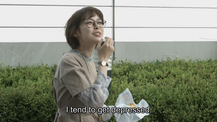 In the last episode, Soo Young is told by Team Leader Kim that her contract with COMFO will not be renewed. Devastated and heart-broken, she drags her feet out of the office and to a balcony where she eats a hamburger to satisfy her depression. Min Suk finds her sitting by herself and tries to cheer her up, but it doesn’t work. Soo Young remains sad and confused internally even though she puts on a fake smile.