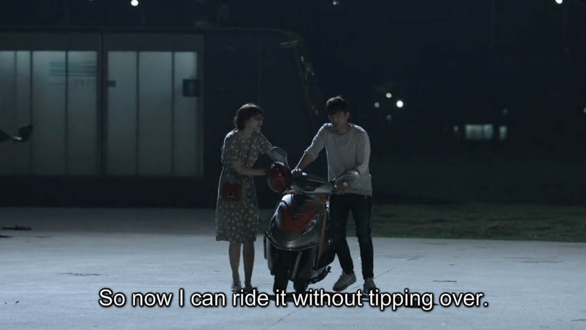 Min Suk waits for Soo Young outside of the convenience store and invites her to a beer session with him, but she declines. While walking home together, Min Suk notes Soo Young’s dejected behavior so to cheer her up, he disappears to grab a motorbike that he borrowed from his friend’s restaurant. He guarantees that it will change her mood once she gets on it in which she predicts it won’t, but once she rides on the motorbike with him, Soo Young’s mood does change. She becomes very elated and cheerful while on the motorbike because of the fresh breeze blowing past her face and because she uses this opportunity to let out all of her suffocating feelings. After she and Min Suk take turns cursing, Soo Young confesses to Min Suk that she thinks he’s cute (ooh la la). In return, Min Suk takes his turn to confess and admits that he thinks Soo Young’s…dumb (hahaha).