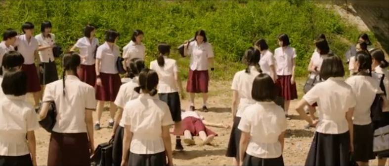 The movie begins by following two high students riding on a bicycle. They continue to ride through the fields with the male student continually looking back at the female student in concern, but smiling when he finds her happy and content. The ride comes to an abrupt stop though when the couple notices Young-sook (Park Bo Young), the bad-ass and frightening leader that harbors a crush on our male student. Young-sook also notices the couple and grows annoyed at the sight of her crush with another woman, but she goes on to mind her own business.