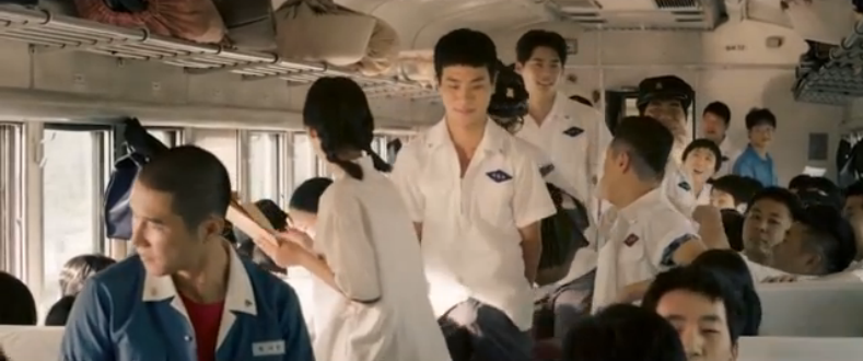 Our male lead, Choong-gil (Lee Jong Suk) and his classmates are all on a train returning from a field trip. While on the train to their school, he watches as his friend gets slapped in the face for being a “pervert.” Pitiful, Choong-gil advises his friend on how to prevent a girl from slapping you: you place the back of your hand on her face then turn it around so that the palm of your face is touching her hand. Then she will slowly fall for you with just one simple but intense touch (my reaction: omg this is so lame. Haha).