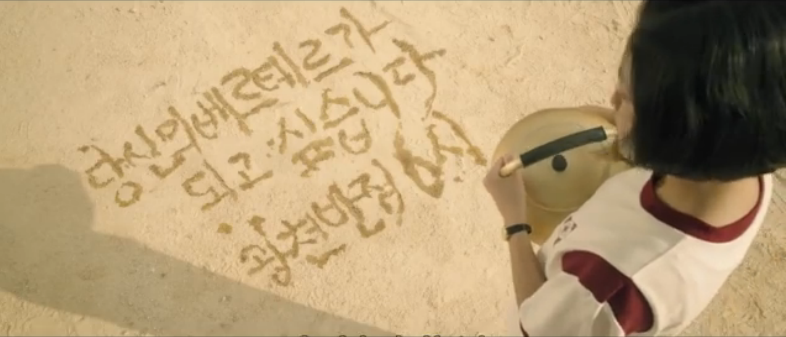 Meanwhile, Young-sook waits at the bus station to travel to Seoul. In a voice-over, Young-sook explains herself saying, “Choong-gil, it’s not that I’m running away. That day when we were talking about our past, I realized except for you, I’ve never wanted to be anything. So even though I just started I want to find it. Because of that, you have to realize your dreams too. Don’t just say that you want to sail. Use these books and study hard. You can do it, I really believe it. Okay?” Young-sook writes all of this in the letter that she specifically wrote just for Choong-gil. When he finishes reading it, he continues to sob knowing that she’s gone.