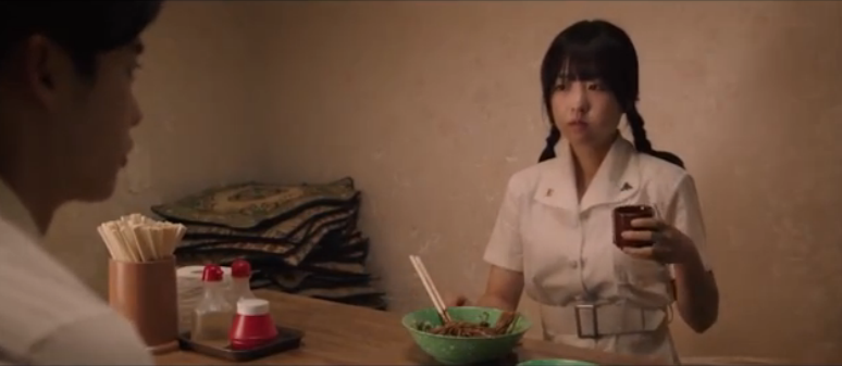 After eating at the hotel with her friends, Young-sook returns home only to find visitors/customers there (she sleeps at her restaurant). She waits for a while until they leave and then enters her house. Young-sook cooks a small meal for a frequent customer even though it’s late at night without saying a single word to him then leaves afterwards to enter her bedroom.