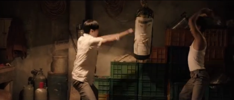 So that night, Choong-gil carries a small pocketknife with him to go kill Gwang-sik like how So-hee had asked. Choong-gil follows Gwang-sik and tries to sneak up on him, but he eventually gets caught and discovered by Gwang-sik. Choong-gil can’t bring himself to stab Gwang-sik, so Gwang-sik takes the chance to beat Choong-gil up. Choong-gil comes home that night with a bruised and injured face, but Gwang-sik’s beating motivates him to work even harder. Choong-gil teaches himself a few martial art poses (not moves but poses haha) and randomly kicks and punches a punching bag pretending that it’s Gwang-sik to prepare himself when he fights Gwang-sik again.