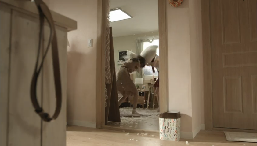 Soo Young leaves by herself when work ends without notifying Min Suk and even ignores his phone calls. When she gets home, she tries to converse with Yoo Ah, but her younger sister is still angry over how she dated her Lee Hubby. Yoo Ah states that Soo Young was so old for Min Suk she could have been his grandmother. LOL. The sisters continue to throw insults and jabs at each other until they are so immersed in their argument over Min Suk that they get into a pillow fight. Hahaha. When the pillow fight comes to an end, Soo Young runs out of the house to escape from her sister.