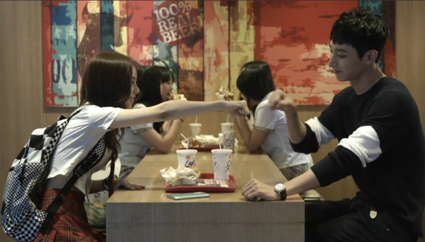 Meanwhile back at school, Yoo Ah has just learned from Tae Suk and Deok-hwan that Min Suk had been dating her older sister Soo Young. She walks away infuriated and skeptical, refusing to believe that Min Suk was the ‘director’ that she would always hear her sister talk about. She won’t believe what they’re telling her unless she sees it with her own eyes. Yoo Ah claims that she liked Min Suk first, so therefore he is hers. When Yoo Ah is gone, Deok-hwan worries for Min Suk, but Tae Suk grows concerned for Yoo Ah (oohhhh, so is the drama building up another love line?).