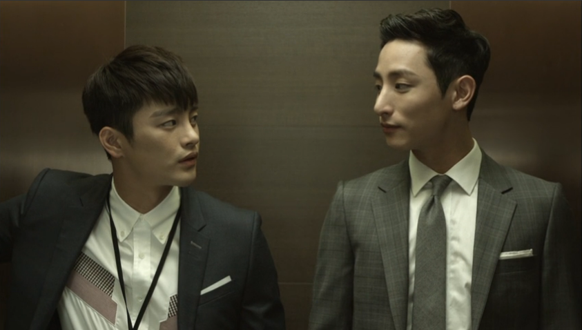 When Director Yoo leaves his dad’s office, he enters the same elevator as Min Suk. He warns Min Suk that since he and Soo Young are having some problems, he might try to get in contact with Soo Young again. *sigh*