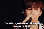 Yoongi: i really admire you for not only your talent and passion that is clearly demonstrated in your music and performances. but i also really admire your ‘idgaf’ kind of attitude where you do whatever you want and say whatever you feel like saying. you kind of care less about how people feel and is more in tune to doing what you want or feel like doing and i admire and appreciate that about you. just knowing that you won’t change based on what people say about you b/c you know yourself more than anyone else or b/c you know that really the only opinion that matters in the end is yourself’s. i know that times have been hard especially with the past and you’ve really went through it all. you’ve worked so hard my love and you’re gonna continue to do great and amazing things. i can’t wait to witness that as i stay by BTS’s side. thank you for being such a passionate person, an intense rapper, a crazy good performer, a wacky BTS member, and for just being Min Yoongi.