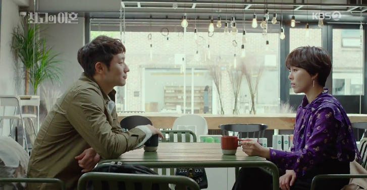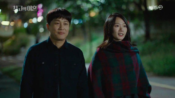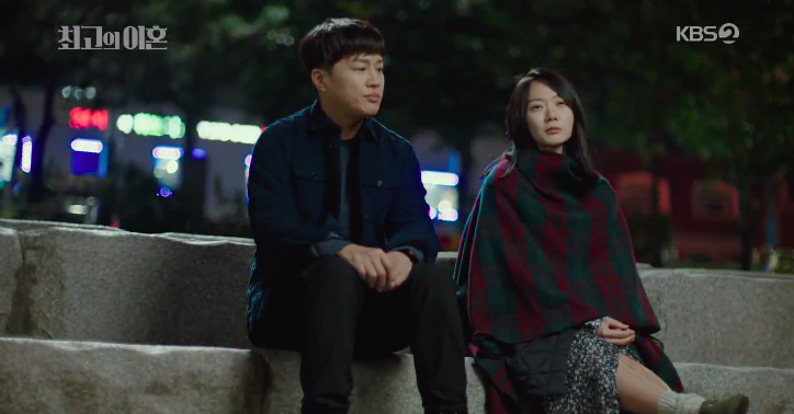 Hwi-roo and Seok-moo stop at some stairs by the river to continue their talk. Hwi-roo explains the story behind why she wanted to become a mom; she always thought it was something she’d be good at. Of course, she never received that opportunity to be a mother during her marriage with Seok-moo, but she’s okay with that. Hwi-roo has also come to terms that she and Seok-moo are two very different people who unfortunately weren’t meant to be. She doesn’t want to resent him like how she did in the past or possibly will in the future; Hwi-roo wishes to end things peacefully with Seok-moo.