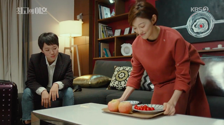 Yoo-young’s sister arrives at her place and the two sisters catch up with each other over their marriage. Yoo-young reiterates that Jang-hyun no longer lives with her, but does bring up Seok-moo to her sister. What does she think of Seok-moo? Yoo-young’s sister found Seok-moo irritating; she would choose Jang-hyun if they were talking about looks. However, Yoo-young’s sister doesn’t feel good about either guys. There are only 2 categories of guys: those who are annoying and those who aren’t.
