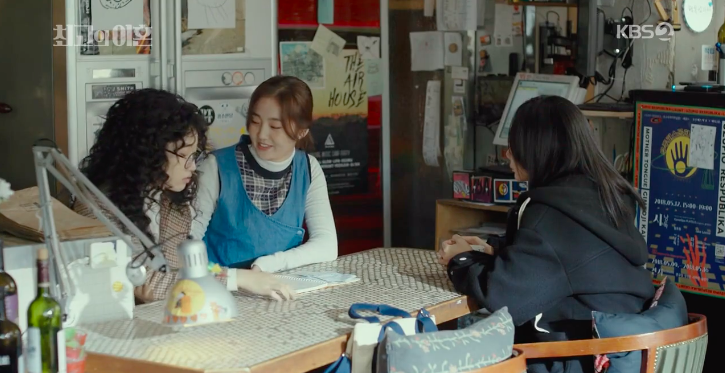 Yoo-young wakes up to a phone call from her sister who asks her if she can stay with Yoo-young for the night. Yoo-young answers yes and adds that Jang-hyun isn’t living with her anymore. Hwi-roo also wakes up and finds Ki-wan entering the room with some coffee and bread. Being the silly person she is, she accidentally drops the cup of coffee onto the orange outfit she had borrowed from Ki-wan. The two wash the outfit at a laundry-mat and discuss about Hwi-roo’s book. Eventually, Hwi-roo decides that she would want her book to have a happy ending.
