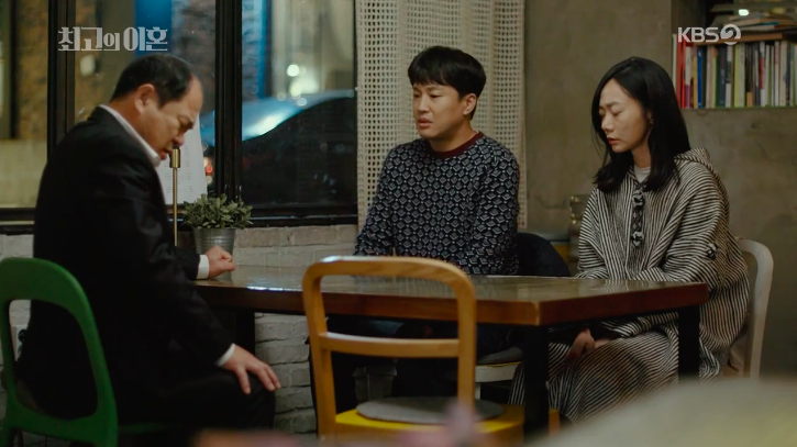 With Dad gone, it’s just Seok-moo and Hwi-roo at the cafe. They catch up with each other since Hwi-roo’s moved out of the house. Hwi-roo comments that she’s getting to do what it is she wants now that she’s moved out. She also wishes for Seok-moo to find someone who will love him and who will make him happy. Though she doesn’t reveal to Seok-moo about her children’s book, she hopes that it will be successful nonetheless. The divorced couple ends the conversation with Seok-moo congratulating Hwi-roo on her new start. He hopes she’ll be happy.