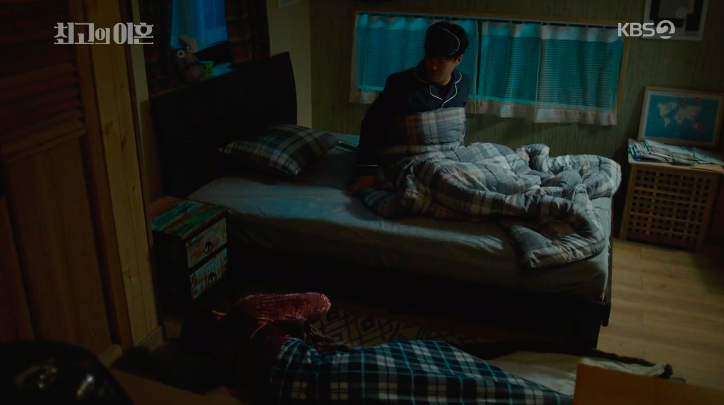 Seok-moo himself grabs some sleep. As he enters Hwi-roo’s bedroom, he finds her black hair tie resting next to her pillow. Later on that night, Seok-moo wakes up in the middle of the night and finds Jang-hyun sleeping on the floor in his room. Though he initially freaks out at first, Seok-moo permits Jang-hyun to sleep in the same room as him. Jang-hyun admits that he found Seok-moo and Hwi-roo a match for each other; does he possibly still like Hwi-roo? However, Seok-moo avoids the question and encourages Jang-hyun to just sleep.