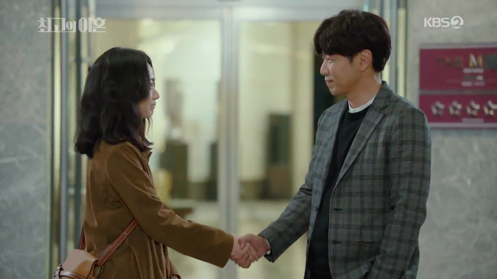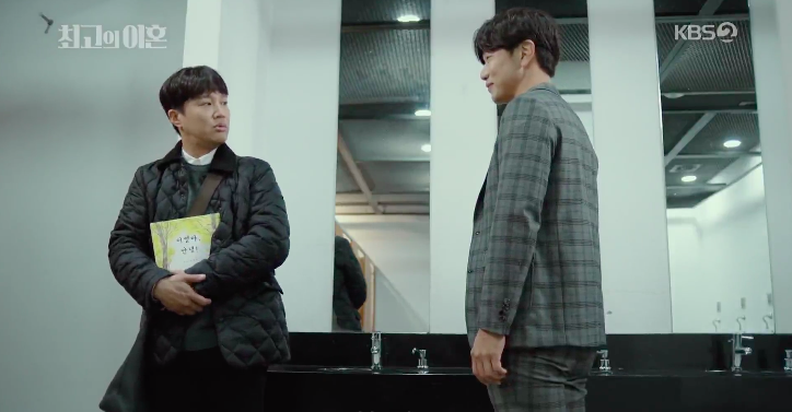 He excuses himself and exits out of the restaurant, but Hwi-roo follows after him. She apologizes to Seok-moo and comments that their divorce was not entirely his fault; she was too demanding and also made mistakes during their marriage. Seok-moo doesn’t pin any blame on Hwi-roo and walks out afterwards. He then receives a phone call from Jang-hyun.