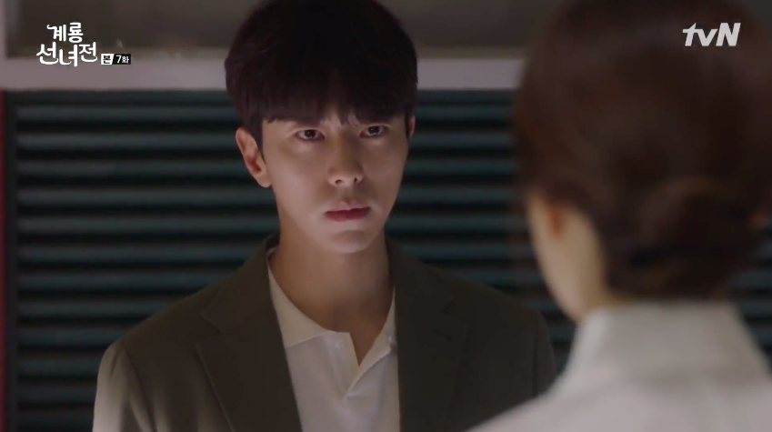 While Kim Geum urges Yi-hyun to apologize for his harsh behavior towards Ok-nam just seconds earlier, Yi-hyun is focused on something else. He catches a glimpse of Kim Geum as Fairy Bausae and panics. He’s suddenly reminded of the moment when Fairy Izy of Mizar was punished and banished from fairyland as a result of disobeying some rules. It was Fairy Bausae who had betrayed her and caused her to get punished.
