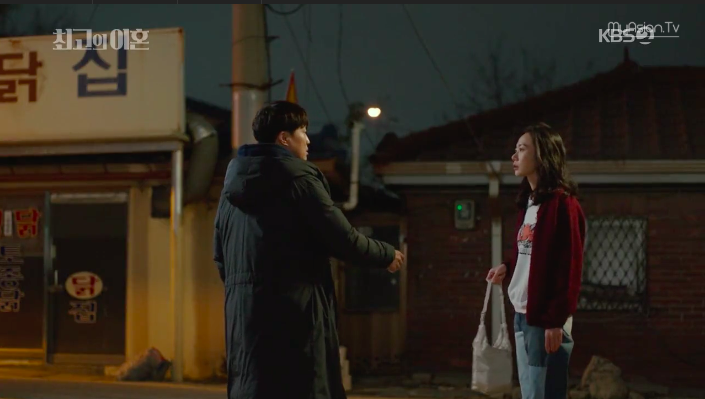 That night, Yoo-young checks up on Jang-hyun outside the house and urges him to just go home. He shouldn’t be outside in the cold on his knees. However, Jang-hyun remains stubborn and determined to prove his worth to both Yoo-young and Mom. Yoo-young told him to wait so he’ll wait for her as long as he has to. As Seok-moo walks to the train station, he’s suddenly approached by Hwi-roo who runs after him with some food that her mom had packed for him.