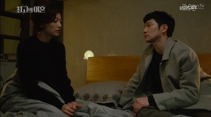 They then move on to talking about one of their encounters at the rooftop house many years ago. On that morning, Seok-moo just happened to stop by Hwi-roo’s house as she was suffering from severe anxiety. Thankfully, he was there to comfort her and lend her his support. The two formed an adorable bond with each other over night and the rest was history. It might not have meant much to Hwi-roo, but the memory has a totally different meaning for Seok-moo now. He always imagined Hwi-roo would be by his side when they were married so he took her for granted and forgot how much he liked her. That’s why their marriage went downhill.