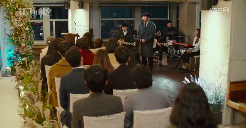 Seok-moo leaves to join Jang-hyun’s “bachelor party”.. except it’s just the two of them. Jang-hyun checks in on Seok-moo’s song that he has prepared for the wedding and anticipates the song which he assumes Seok-moo wrote while thinking about Hwi-roo. Seok-moo hints that it sounds like a break-up song, but Jang-hyun is fine with it as long as the couple in the song doesn’t curse at each other. LOL. Plus, not all break-up songs are bad or sad. At that moment, the two are joined by Yoo-young and Hwi-roo.