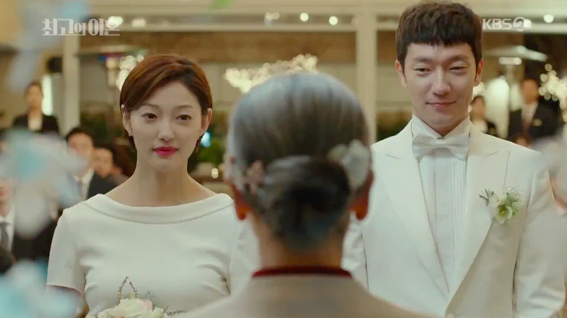 Ma-roo greets Yoo-young in the bride’s room. Yoo-young asks about Hwi-roo and is curious if she’ll be attending the wedding. Jang-hyun and Seok-moo eventually make it to the wedding just in time. Seok-moo accidentally walks down the aisle with Jang-hyun, but seats himself in the front row before Yoo-young makes her appearance. Yoo-young also takes a walk down the aisle and stands next to Jang-hyun.