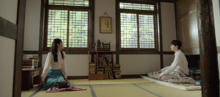 When she arrives at the rehearsal room, she overhears Woo-jin reading a Japanese poem in Korean. She barges in and questions why he’s reading the book in Korean, but Woo-jin is more curious about something else. Why did Sim-deok just suddenly barge into the room without his permission or knowledge? Just as Sim-deok is about to leave, Nan-pa enters the room and introduces them both to each other. Woo-jin finally warms up a bit to Sim-deok and invites her to participate in the play with them as an actress.