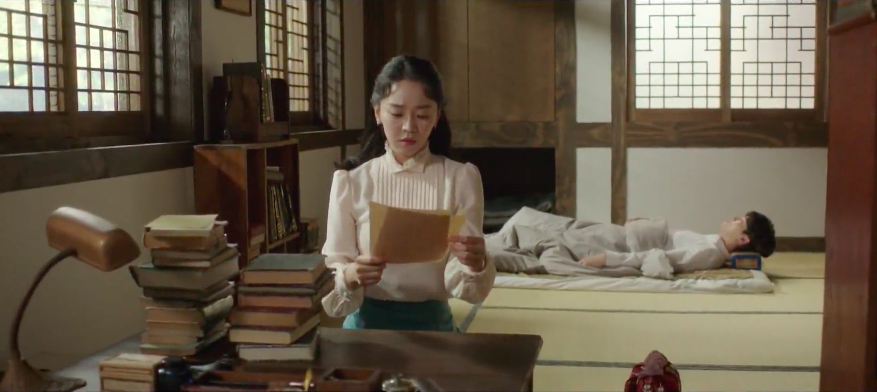 Soprano singer Yun Sim-deok (Shin Hye-sun) practices another round of singing with her vocal instructor. She struggles to properly emote the emotions in the song so her instructor encourages her to position herself as the woman in the song in order to sing better. Sim-deok listens and does as she is told.
