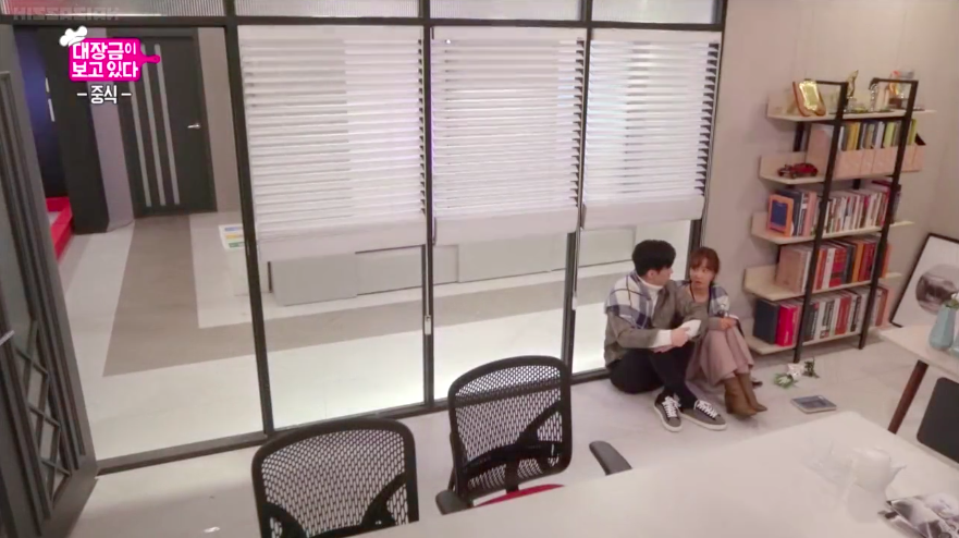 The two are stuck in Manager Lee’s office with no cell phone or source of contact with the outside world. They eventually sit next to each other and share a blanket to keep themselves warm. Thankfully, Jung-sik arrives at the work building to visit Seung-ah. Since he’s unable to contact Seung-ah via cellphone, he decides to use the stairs to reach her physically.