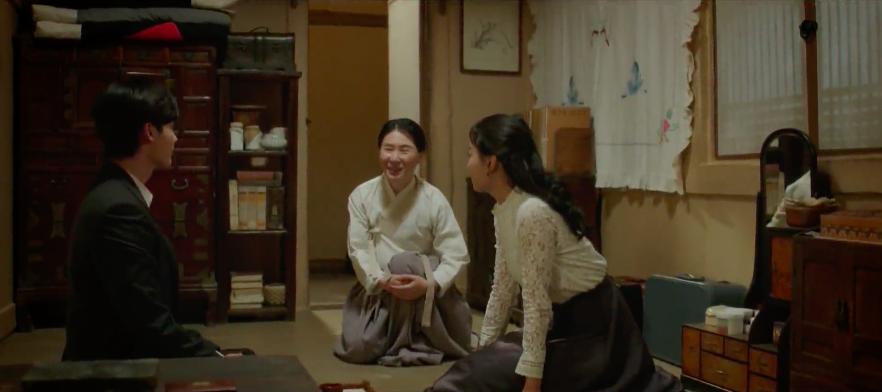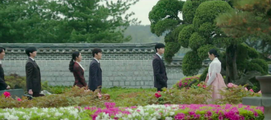 Furthermore, the troupe is introduced to Woo-jin’s wife upon arriving at the house. As she takes the rest of the members inside the house to rest, Sim-deok stays behind in shock and pain; she wasn’t aware that Woo-jin was married all along. Upon learning the news, Sim-deok is only able to stand across from Woo-jin in complete silence and uncertainty.