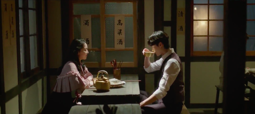 So Woo-jin and Sim-deok set out on a small date. They have a talk about hats, their pen names, and even shortly stop in front of a music shop to talk about the latest music releases. Afterwards, Sim-deok takes Woo-jin to the grand theatre she hopes to be able to perform at one day. Performing for the play has ignited her dreams of becoming a singer and she hopes to be able to continue singing with Woo-jin there to support her. The two then decide to grab dinner together.