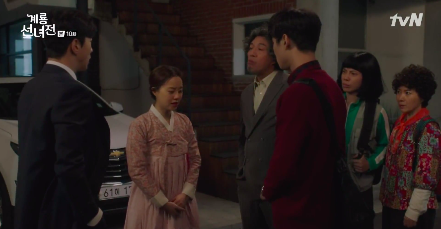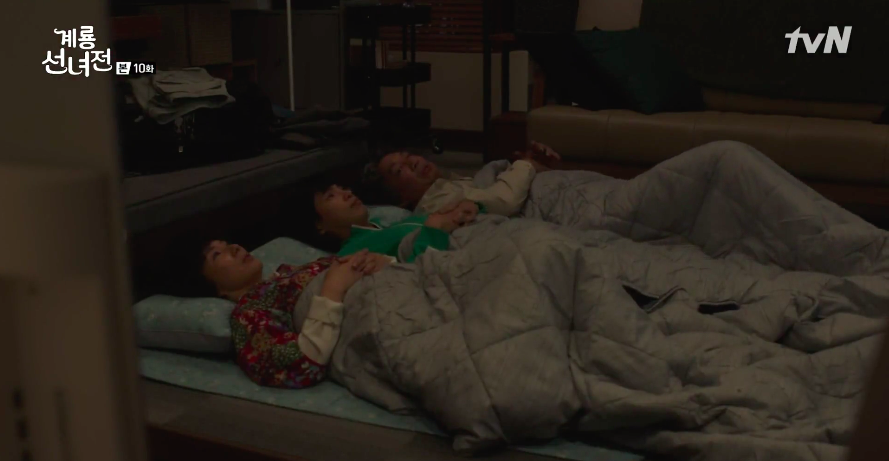 Yi-hyun yells at Ok-nam in anger upon getting her attention. Why didn’t Ok-nam answer his phone call? Kim Geum and Ok-nam are taken aback by Yi-hyun’s aggressive behavior and our trio disproves of his yelling. They confront Yi-hyun about his treatment towards Ok-nam, but they also become wary when they learn that he’s Kim Geum’s roommate. They might not get to sleep over at the house if they bicker with him. However, Yi-hyun eventually approves of our trio and permits them to sleep over at his place only because they’re like family to Ok-nam.