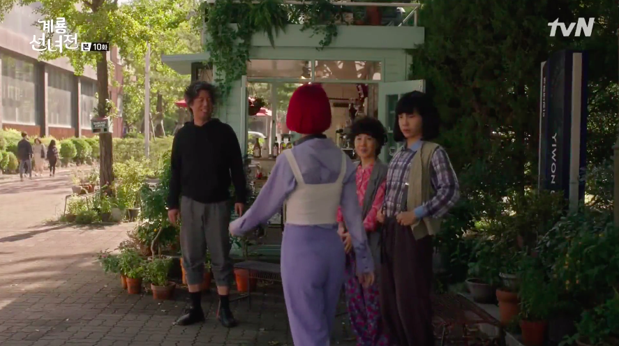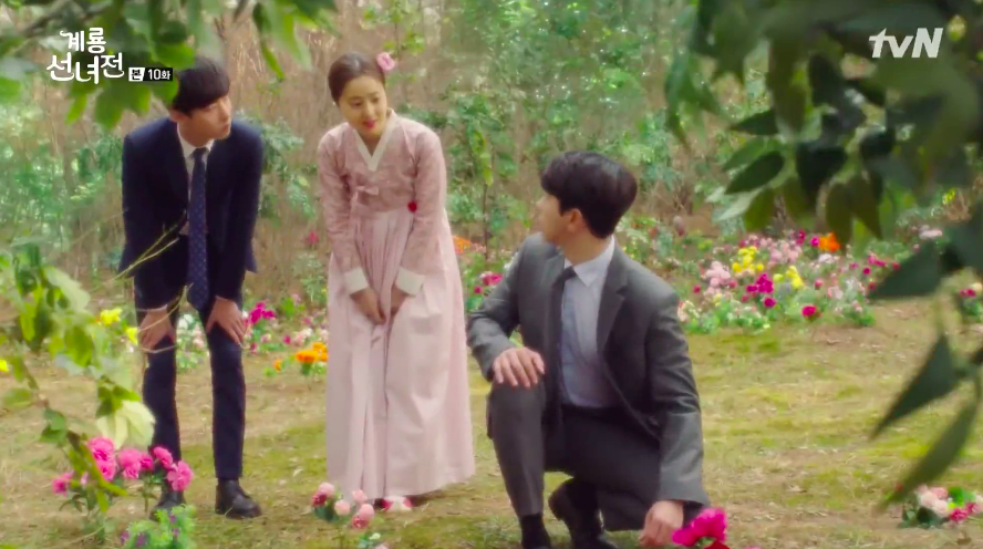 Yi-hyun, Ok-nam, and Kim Geum finally arrive at Mount Gyeryong. However, just like last time, the three get lost so they eventually get out of the car to wander around. Upon following a path, they come across flowers that reminds them of fairyland. Yi-hyun approaches one of the flowers and finds it familiar. The drama then takes us back to fairyland when Fairy Izy was scolded by Master of the Northern Star for failing to return to fairyland after visiting the waterfall. He assumes she probably stayed in the human world to get her revenge on human beings.