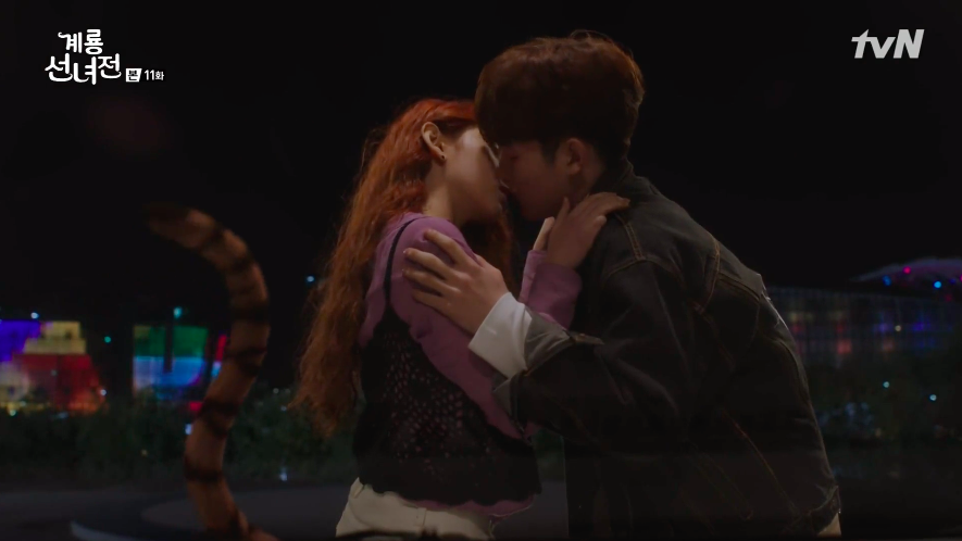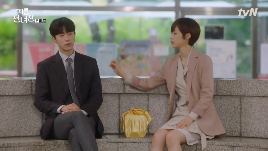 We still don’t know much about Gyeong-sul and what his deal is. We also didn’t receive much details this time about the reincarnations or fairyland. I know we should be provided with context about the past so that we can make progress and inferences on the husband search arc in the present, but is it weird that I actually feel relieved when we don’t receive flashbacks of our characters from 699 years ago or from fairyland? I know it’s necessary, but I sort of feel as if the drama has gone from focusing on the husband searching to now focusing on Yi-hyun and Kim Geum’s rivalry to win over Ok-nam. It seems as if both Yi-hyun and Kim Geum are just merely fighting to be with Ok-nam as her lover and not because they’re confident they’re the reincarnated husband she’s looking for. I actually would be fine if the drama decided to just drop the whole reincarnated husband thing and focus on the love triangle as its own thing. It wouldn’t make much sense since Ok-nam traveled to Seoul in search of her reincarnated husband (and her winged clothes), but the drama hasn’t been doing that great of a job focusing on that. Instead, we’ve just been watching Yi-hyun and Kim Geum fight for Ok-nam’s love so why not just continue with that instead?