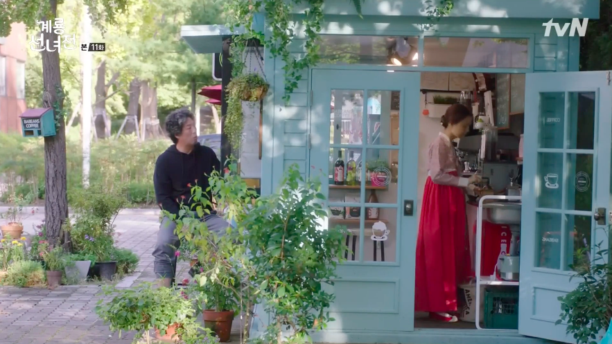 Ok-nam takes care of the plants near the coffee shop. She uses her powers to keep them healthy, but they quickly grow old afterwards. It seems like her powers didn’t work on the plants this time. Ok-nam is then approached by Teacher Gu so the two have a discussion about her mountain trip. Did Yi-hyun recall any memories during the trip? Though Ok-nam isn’t certain, she feels as if Yi-hyun’s lived a hard life which is why he refuses to retrace his memories. She also recalls the kiss between her and Yi-hyun at the mountains and simply states that she feels pitiful and sorry to him (she doesn’t specifically state who exactly). Ok-nam never wants him to ever be alone.