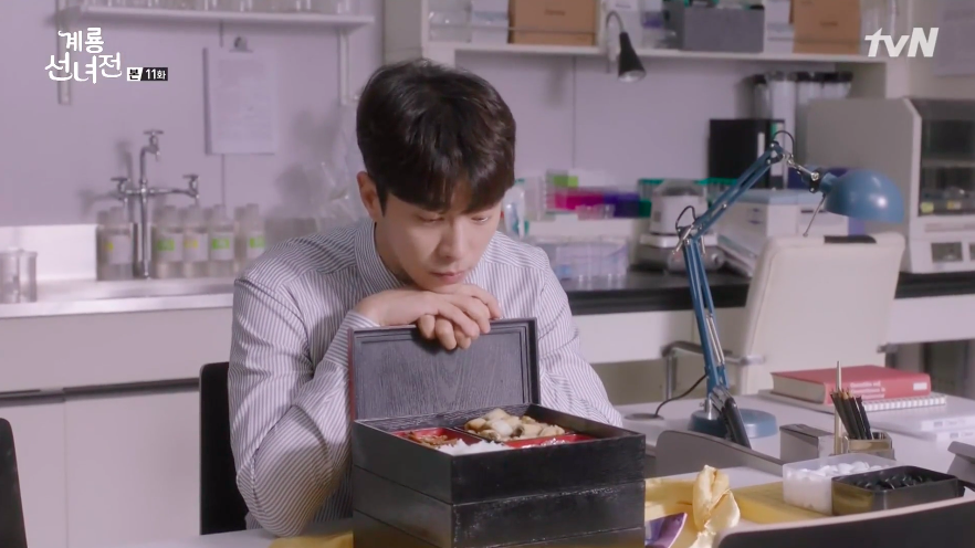 Jeom-soon uses Bong-dae’s phone to contact Gyeong-sul. When he fails to pick up the phone call, Jeom-soon asks Bong-dae to inform her when Gyeong-sul calls back. Gyeong-sul has to pay her back some money. Back in the lab, Kim Geum stares at the couple flower hidden in his drawer that Ok-nam also has. He’s reminded of the moment they bought the flower together. Yi-hyun too thinks about Ok-nam while staring at the lunch box Mama Kim packed for him. He decides to share some of the food with Ok-nam so the two have lunch together that day.