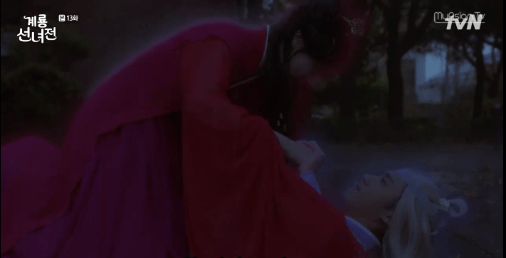 Ok-nam leans in to give Yi-hyun a kiss, but the kiss doesn’t do anything for the both of them. Yi-hyun still grows mad after kissing Ok-nam and walks away in the rain. With Yi-hyun gone, Ok-nam finally concludes that Yi-hyun isn’t her reincarnated husband and had been delusional this entire time. Meanwhile, Kim Geum awakens from his dream and heads out to find Ok-nam. Along the way, he encounters Yi-hyun on campus so he rushes to his aid. However, Yi-hyun is still engulfed in anger and he ends up beating Kim Geum up. Fairy Izy consumes Yi-hyun’s mind and body and she grows enraged at Kim Geum who she envisions as Fairy Bausae for abandoning her back in fairyland. Eventually, Yi-hyun stops and faints so Kim Geum rushes him back home.